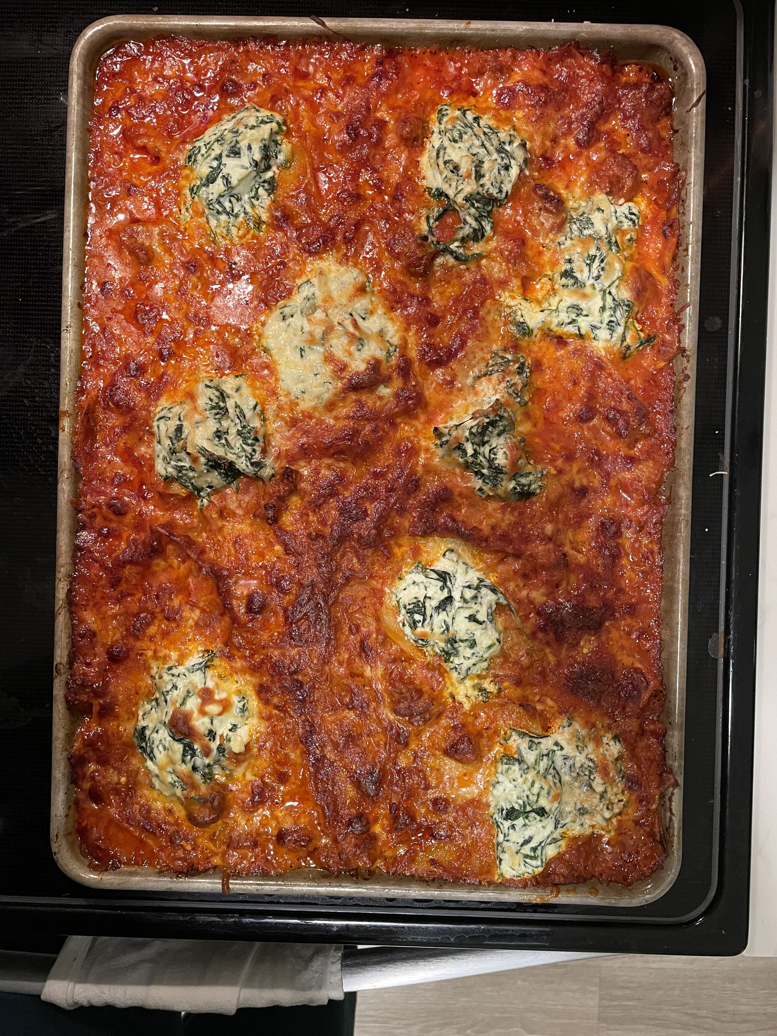 Anyhow back to Garfield. Remember I have celiac disease so I have very limited experience with lasagna but last fall I saw this recipe on Instagram from Giada deLaurentis for a sheet pan lasagna. Easier to prep, less time to cook, more “pizza’d” cheese on the top. Let’s do this.